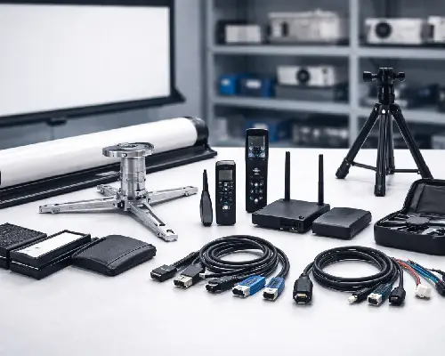 Comprehensive projector accessories services offering genuine cables, mounts, filters, remotes, screens, and accessories ensuring seamless performance and enhanced viewing experience.